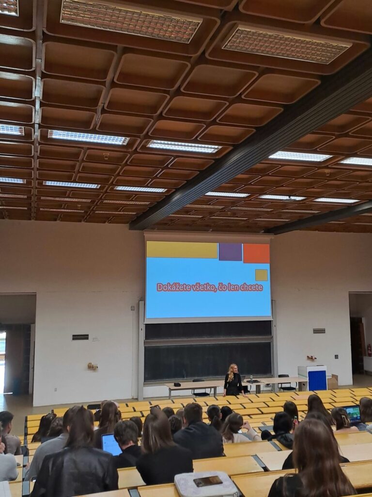 Prednášajúcou bola Lucia Malíčková, projektová koordinátorka v Národnom superpočítačovom centre a Národnom kompetenčnom centre pre vysokovýkonné počítanie (HPC). Vo svojej prezentácii s názvom „HPC/AI – flexibilita a schopnosť učiť sa“ študentom priblížila význam adaptability, neustáleho vzdelávania a otvorenosti voči novým technológiám v rýchlo sa meniacom digitálnom prostredí.
